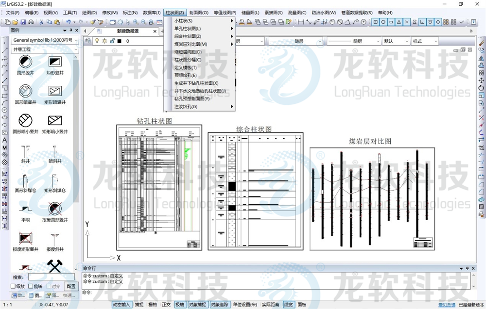 地測圖形協同管理系統主要包括地測數據庫管理、等值線圖、測量圖、儲量圖、柱狀圖、剖面圖、素描圖、防治水圖、瓦斯地質圖等模塊。該系統以先進的算法、精準的空間數據信息處理、高效的圖形處理流程,實現等值線圖、采掘工程平面圖、鉆孔柱狀圖、綜合柱狀圖、煤巖層對比圖、勘探線剖面圖、預想剖面圖、底板等高線及儲量估算圖、巷道素描圖等地測圖件的繪制與管理,是礦井相關專業制圖的基礎。